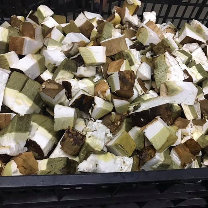 La configurazione standard dei coltelli produce cubetti di funghi da 20 × 20 mm, ma su richiesta la macchina può essere realizzata con diverse dimensioni di taglio (ad es. 15 × 15 mm, 25 × 25 mm o 30 × 30 mm).