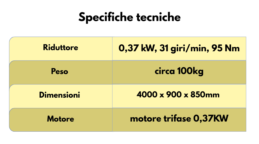 Il nastro ha una capacità di lavorazione di circa 1 tonnellata all’ora.