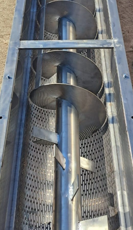 Očišćen proizvod se na kraju procesa usmerava kroz levak u nastavak tehnološke linije.