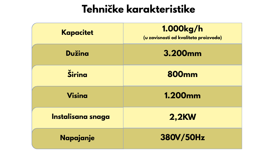 Mašina za grubo čišćenje, poznata i kao peteljarka, namenjena je za uklanjanje većih nečistoća iz zamrznutih plodova kao što su borovnica, kleka i šipurak.