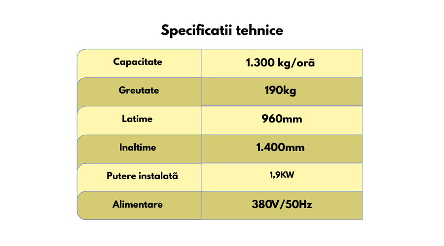 Intreaga structura este realizata din otel inoxidabil rezistent la coroziune, pentru a garanta durabilitate si igiena.