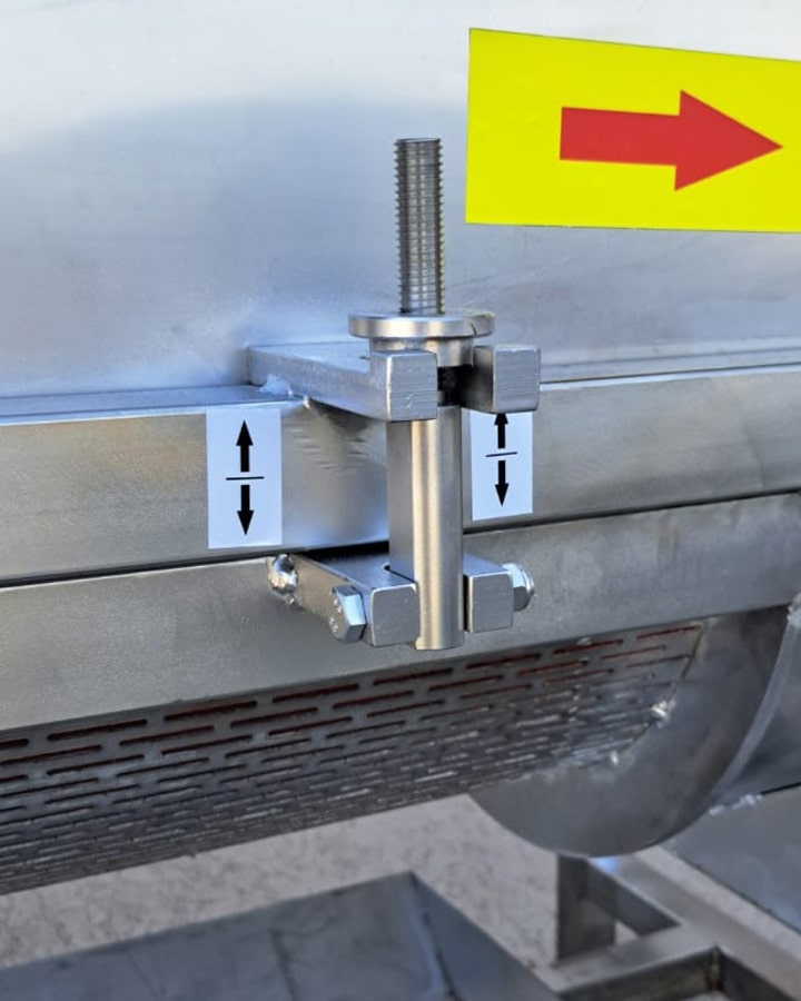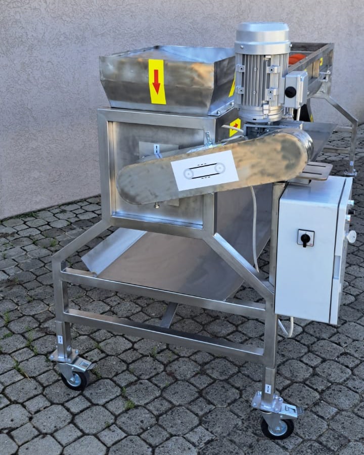 Замороженный продукт перемещается по перфорированному листу, в то время как отходы проваливаются через отверстия в сборный поддон, который расположен по всей длине машины.