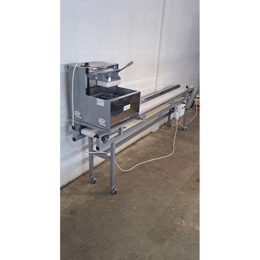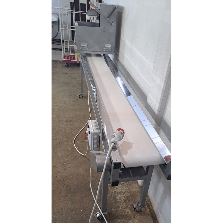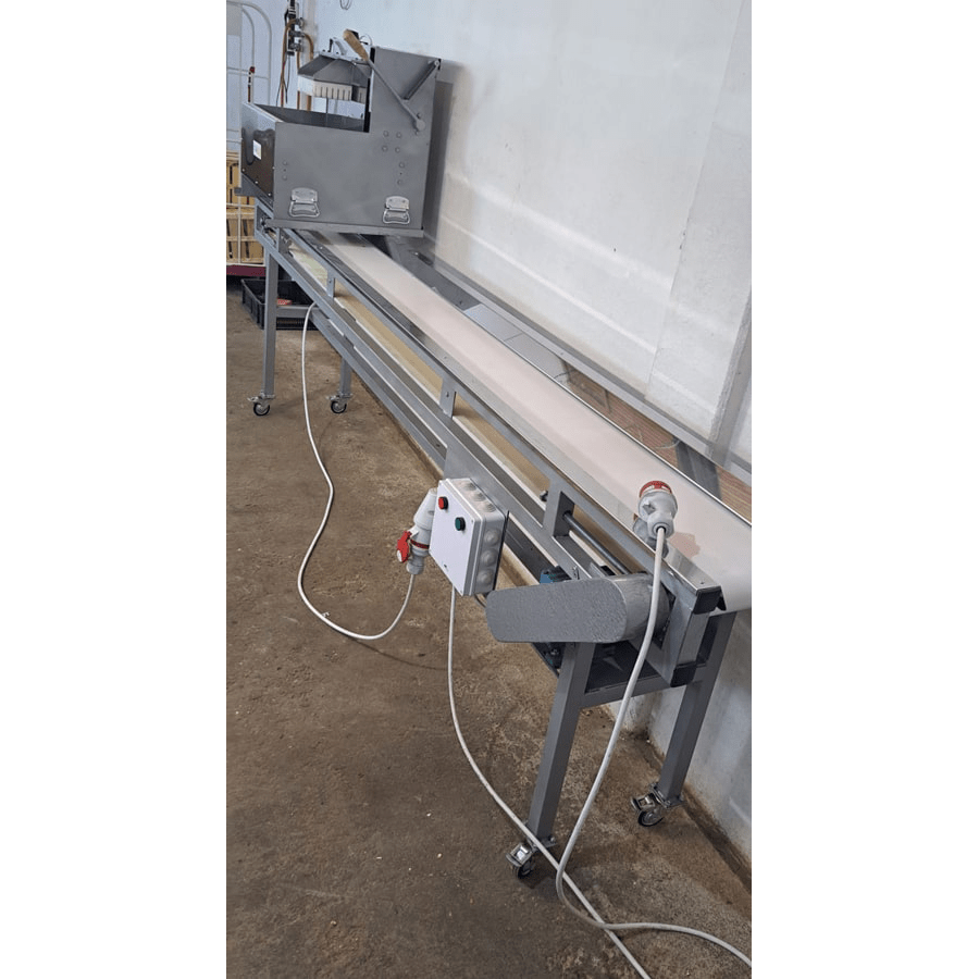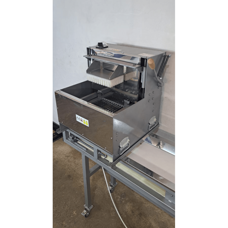 Модель SMK-2 предназначена для нарезки свежих грибов кубиками и дополнительно оснащена транспортерной лентой, которая автоматически отводит нарезанные кубики грибов на следующий этап производственного процесса.