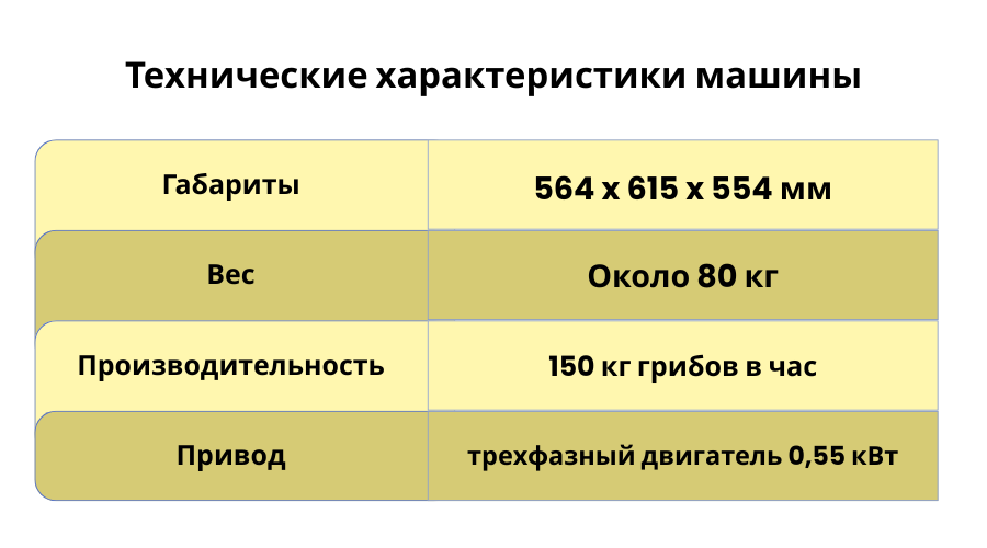 Производительность машины составляет 120–150 кг/ч, и она может заменить от 35 до 40 рабочих при ручной нарезке.