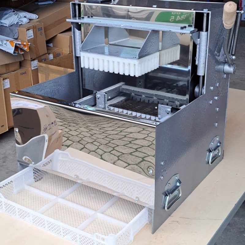 Në varësi të mënyrës së përdorimit, makina ka një kapacitet prej 120–150 kg në orë, duke zëvendësuar punën manuale të rreth 35–40 operatorëve.