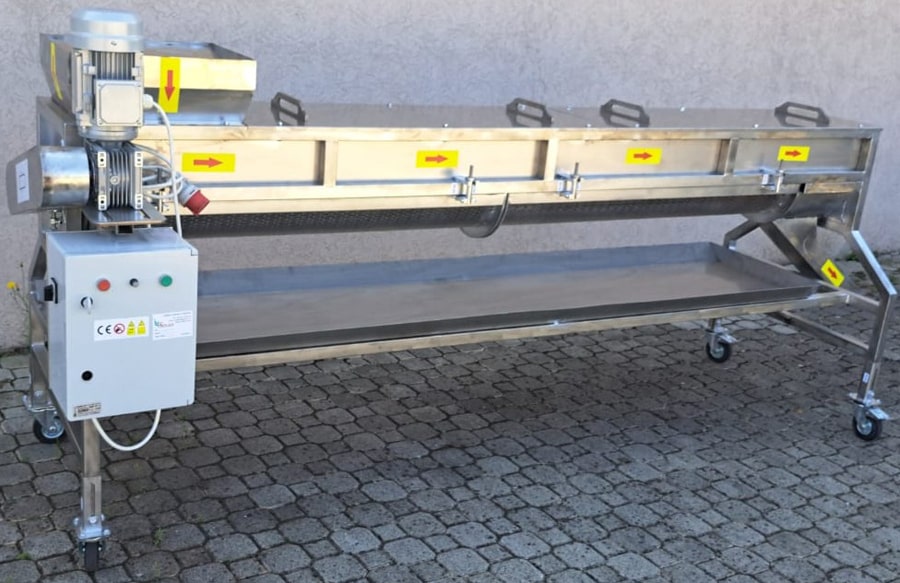 Produktet e pastruara vazhdojnë në vijim të linjës teknologjike për përpunime të tjera, ndërsa papastërtitë dhe mbetjet bien përmes pllakës me vrima në një enë mbledhëse që shtrihet përgjatë gjithë gjatësisë së makinës.
