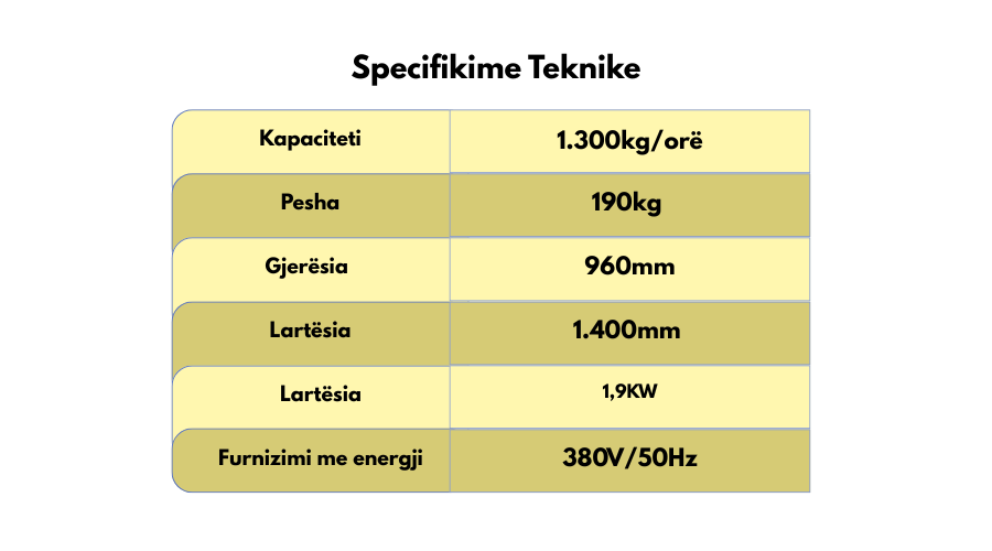 E gjithë struktura është ndërtuar prej çeliku inox rezistent ndaj korrozionit, për të garantuar qëndrueshmëri dhe higjienë maksimale.